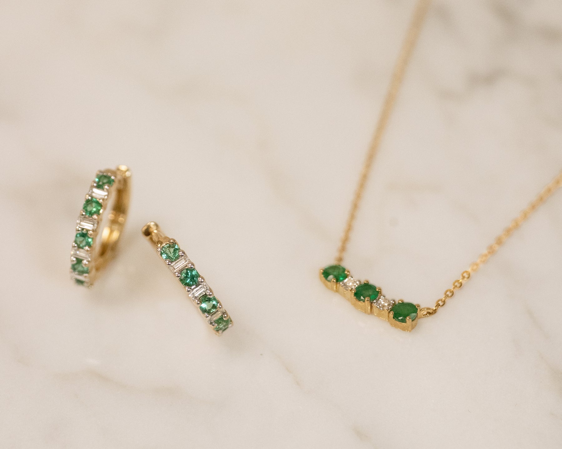 Emerald and Diamond Huggie Earrings