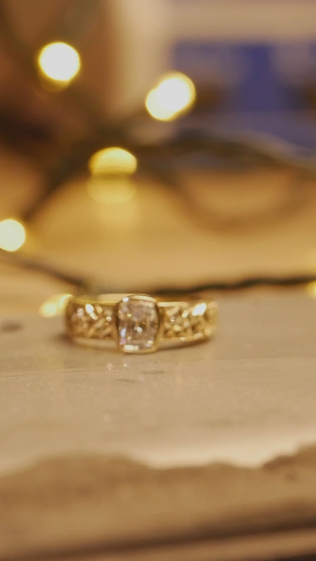 Crafted from hand-forged 18ct gold with the most intricate attention to detail, Eximius is masterfully crafted and engraved by our master jeweller, Darren. This stunning ring features a 1.01ct cushion-cut diamond of G colour and VS2 clarity, certified by IGI. Taking over 12 hours to complete, the engraving showcases remarkable precision and skill. The triangular and geometric patterns tease the light and catch the gold, creating their own magnificent, undulating sparkle.