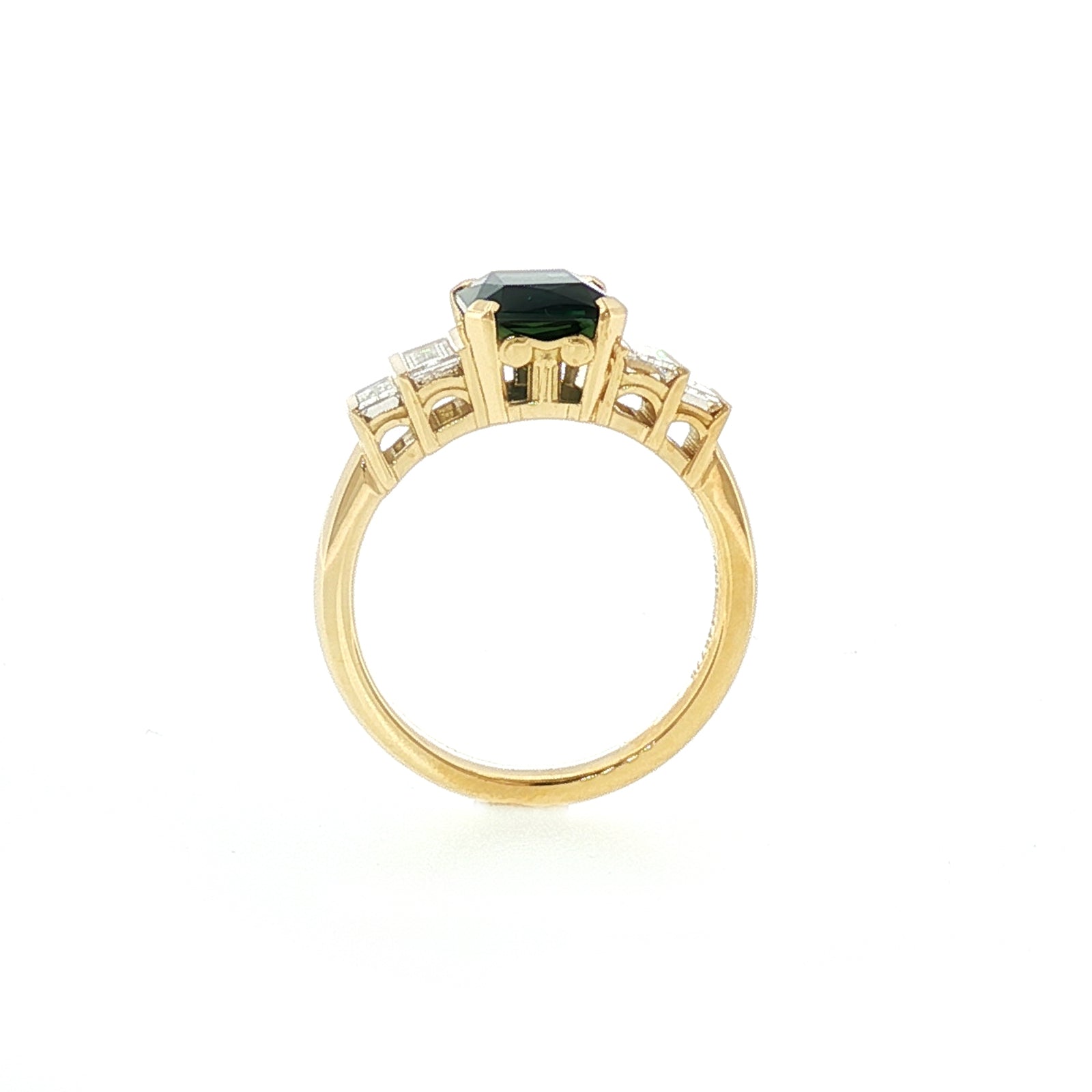 Green Sapphire and Diamond Five Stone Ring in Yellow Gold | 3.69ctw