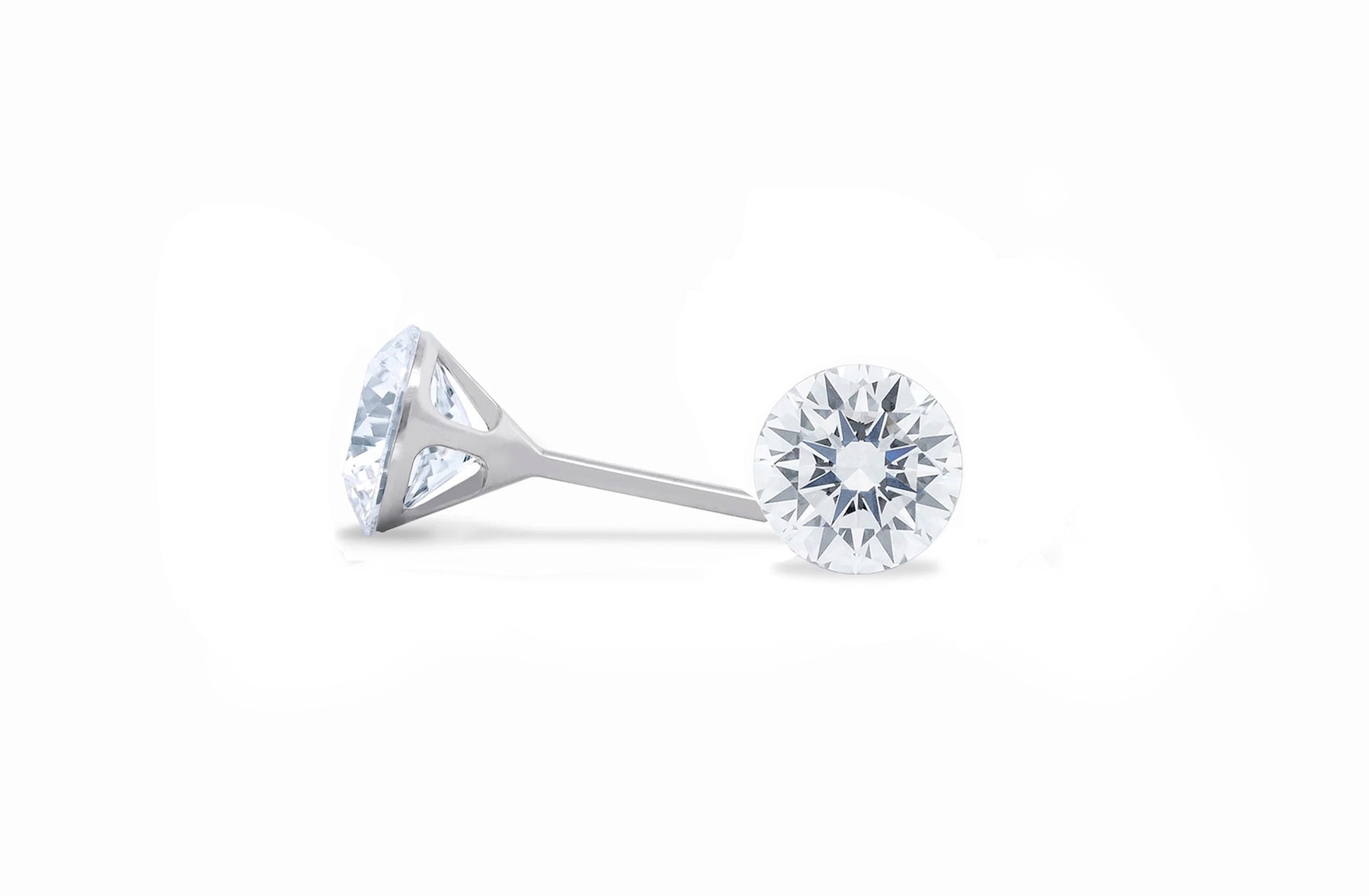 Nothing compares to the elegance and purity of the patented Floeting® Diamond. No claws or clasps - the Floeting® Diamond Stud Earrings put nothing between the eye of the admirer and the diamond itself. It’s as if the diamond is floating upon the earlobe. This pair of patented Floeting® Diamond earrings are of G colour, VS1 clarity, totalling 0.86ctw. The diamonds are secured in a scientifically tested setting made using a specialist titanium alloy paired with 18ct white gold clutches.